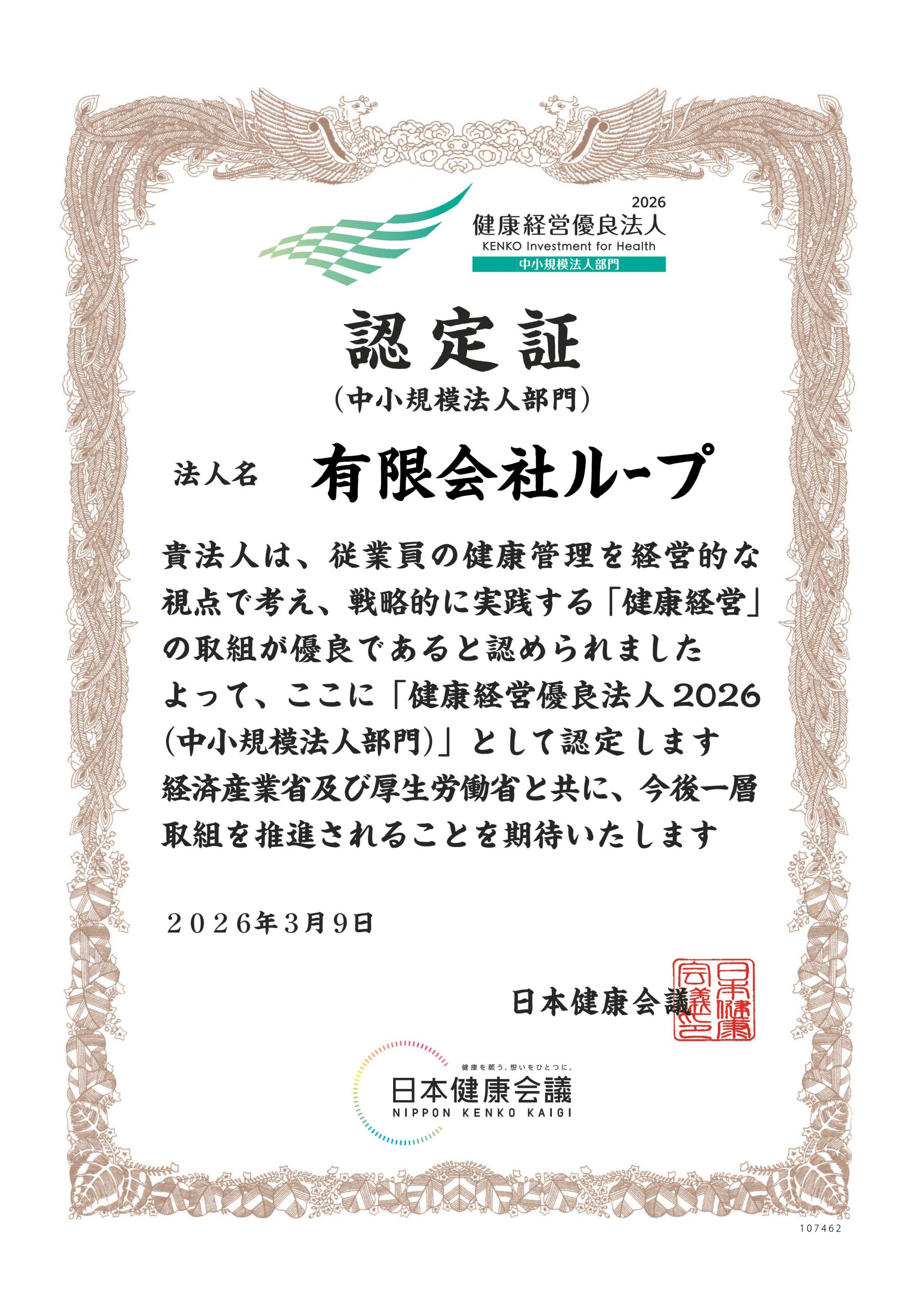 健康経営優良法人2026(中小規模法人部門)に認定されました